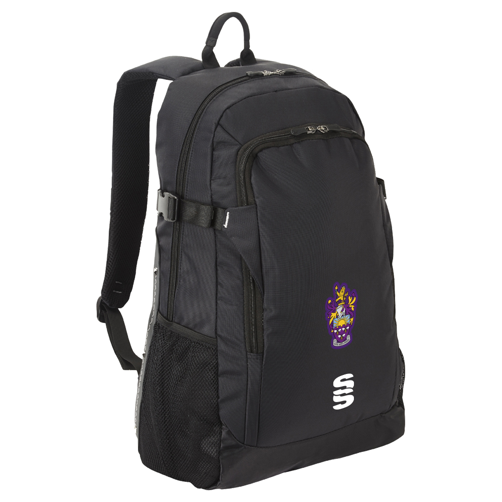 A over shoulder quality backpack made of polyester material with our Surridge SS logo.